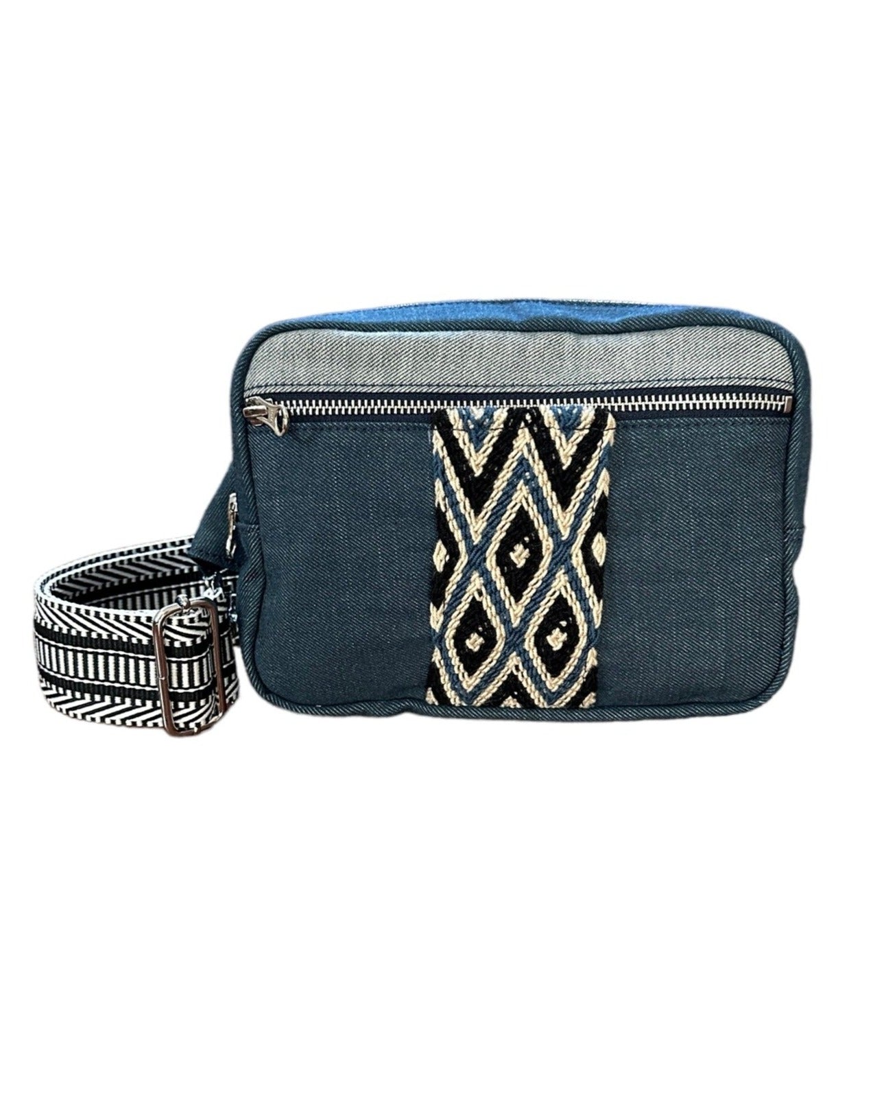 Designed for the modern explorer, the unisex Sling Crossbody Bag offers a sleek and minimalist aesthetic, making it a fashion-forward choice for any occasion. Its unisex appeal ensures that it complements any outfit, whether you're in casual streetwear or more polished ensembles. The colorful band down the front is handwoven by the Wayuu in Colombia.